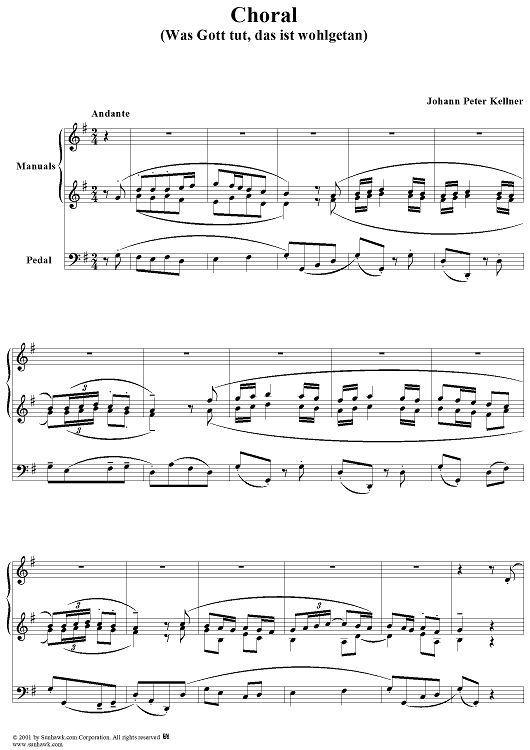 Digital Sheet Music for Choral (Was Gott tut, das ist wohlgetan) by Johann Peter Kellner scored for Organ Solo; id:249925