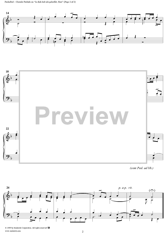 "Chorale Preludes, Part II, Ein Trostlied, 14. In dich hab ich gehoffet, Herr (Psalm 31)" Sheet Music by Johann Pachelbel