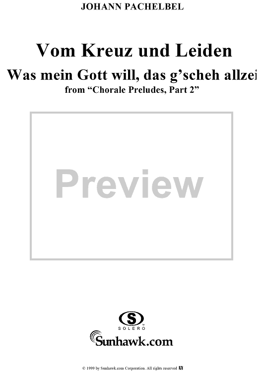 "Chorale Preludes, Part II, Vom Kreuz und Leiden, 13. Was mein Gott will, das g'scheh allzeit" Sheet Music by Johann Pachelbel