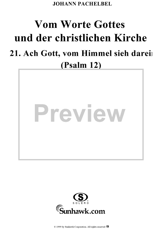 "Chorale Preludes, Part II, Vom Worte Gottes und der christlichen Kirche, 21. Ach Gott, vom Himmel sieh darein (Psalm 12)" Sheet Music by Johann Pachelbel