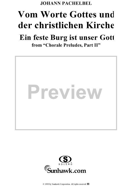 "Chorale Preludes, Part II, Vom Worte Gottes und der christlichen Kirche, 23. Ein feste Burg ist unser Gott (Psalm 46)" Sheet Music by Johann Pachelbel