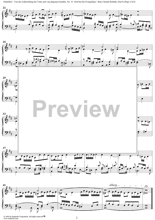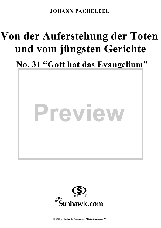 "Chorale Preludes, Part II, Von der Auferstehung der Toten und vom jüngsten Gerichte, 31. Gott hat das Evangelium" Sheet Music by Johann Pachelbel