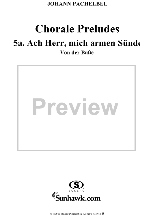 "Chorale Preludes, Part II, Von der buße, 5a. Ach Herr, mich armen Sünder (Herzlich tut mich verlangen)" Sheet Music by Johann Pachelbel