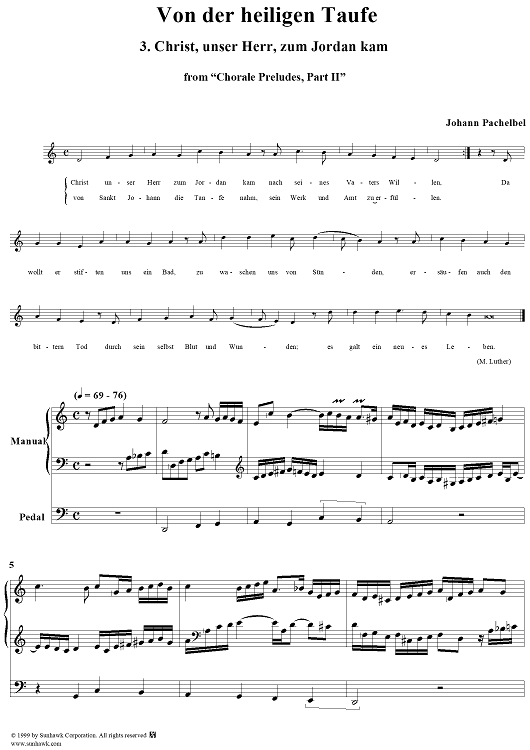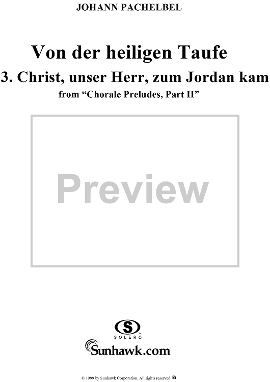 "Chorale Preludes, Part II, Von der heiligen Taufe, 3. Christ, unser Herr, zum Jordan kam" Sheet Music by Johann Pachelbel