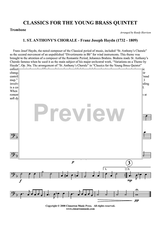Digital Sheet Music for Chorales for the Young Brass Quintet - Trombone by Various, Randy Harrison scored for Brass Quintet; id:416214