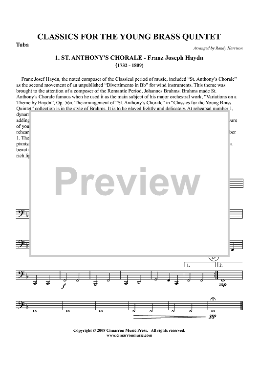 Digital Sheet Music for Chorales for the Young Brass Quintet - Tuba by Various, Randy Harrison scored for Brass Quintet; id:416215