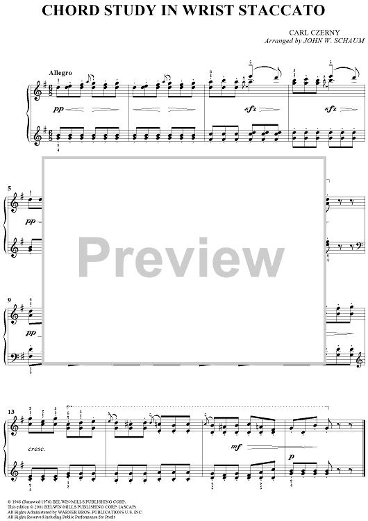 Digital Sheet Music for Chord Study in Wrist Staccato by Carl Czerny, John W. Schaum scored for Piano Solo; id:293108