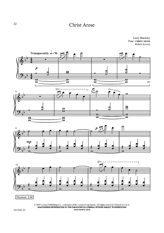 Digital Sheet Music for Christ Arose by Robert Lowry, Larry Shackley scored for Piano Solo; id:433791