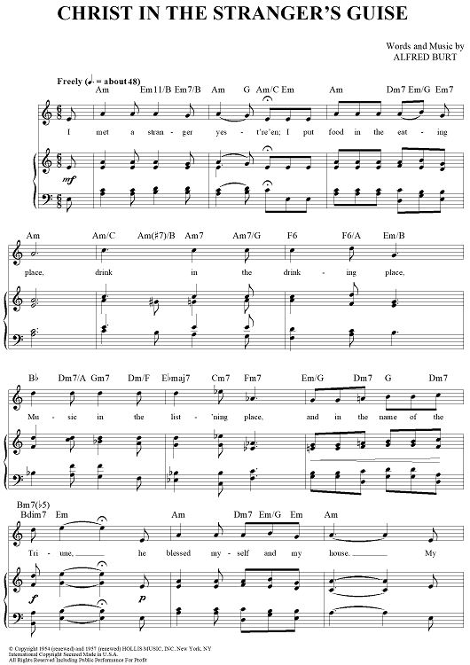 Digital Sheet Music for Christ In The Stranger's Guise by Alfred Burt scored for Piano/Vocal/Chords; id:430329