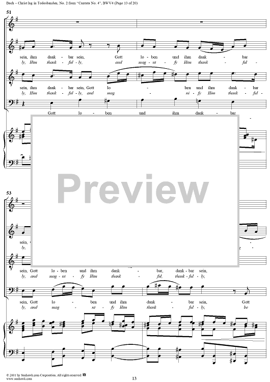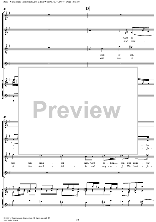 ""Christ lag in Todesbanden" (chorus), No. 2 from Cantata No. 4" Sheet Music by Johann Sebastian Bach