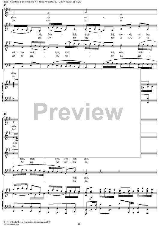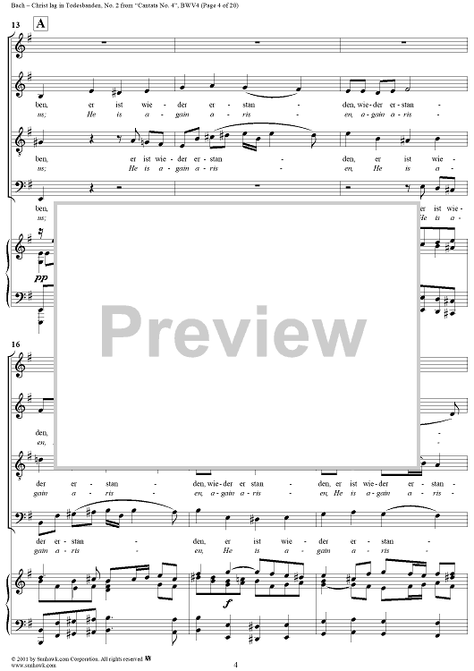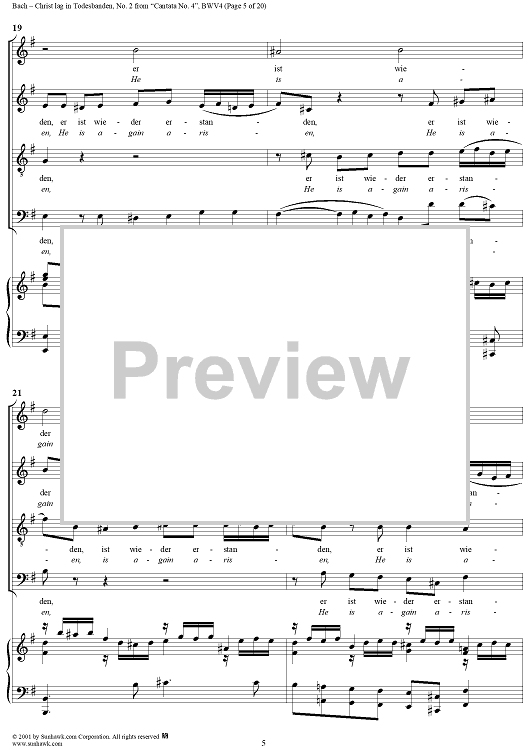 Digital Sheet Music for "Christ lag in Todesbanden" (chorus), No. 2 from Cantata No. 4 by Johann Sebastian Bach scored for Four-part Mixed Chorus/Piano; id:276539