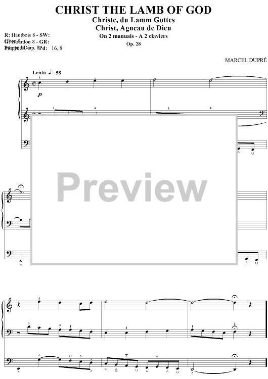 Digital Sheet Music for Christ the Lamb of God, from "Seventy-Nine Chorales", Op. 28, No. 10 by Marcel Dupre scored for Organ Solo; id:271075