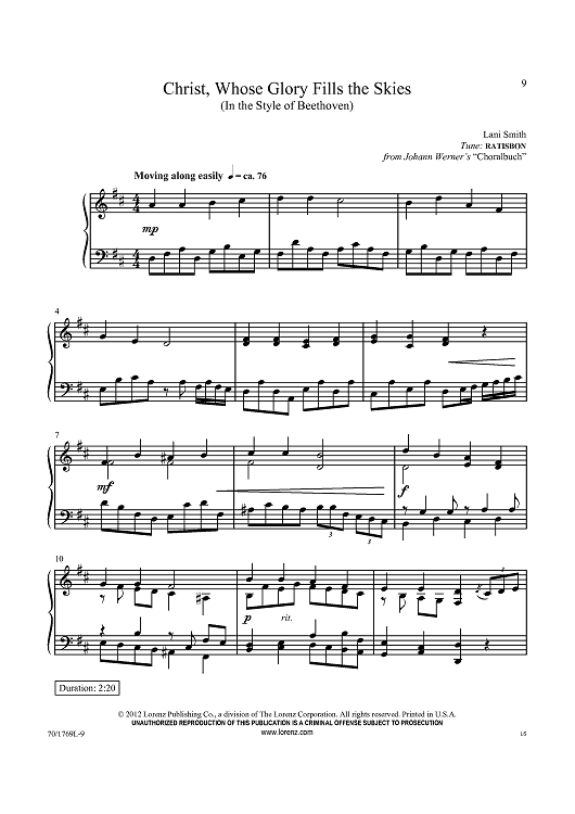 Digital Sheet Music for Christ, Whose Glory Fills the Skies (In the Style of Beethoven) by Lani Smith, Johann Werner scored for Piano Solo; id:433583