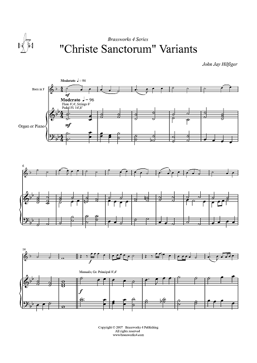 Digital Sheet Music for Christe Sanctorum Variants - Piano Score by John Jay Hilfiger scored for Horn/Piano; id:363207