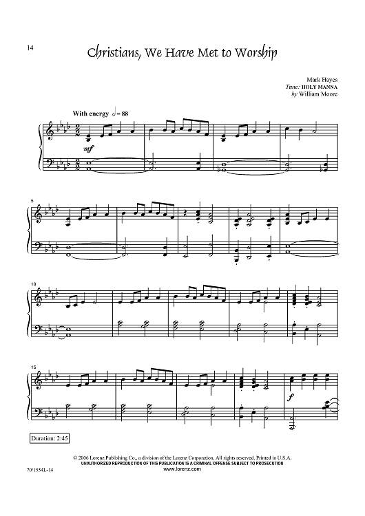 Digital Sheet Music for Christians, We Have Met to Worship by Mark Hayes, William Moore scored for Piano Solo; id:433347