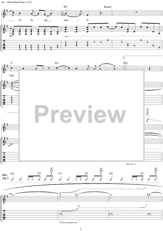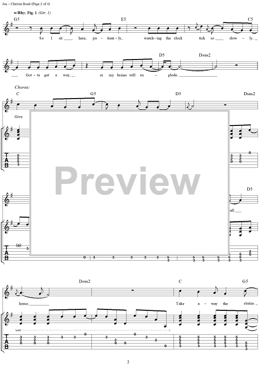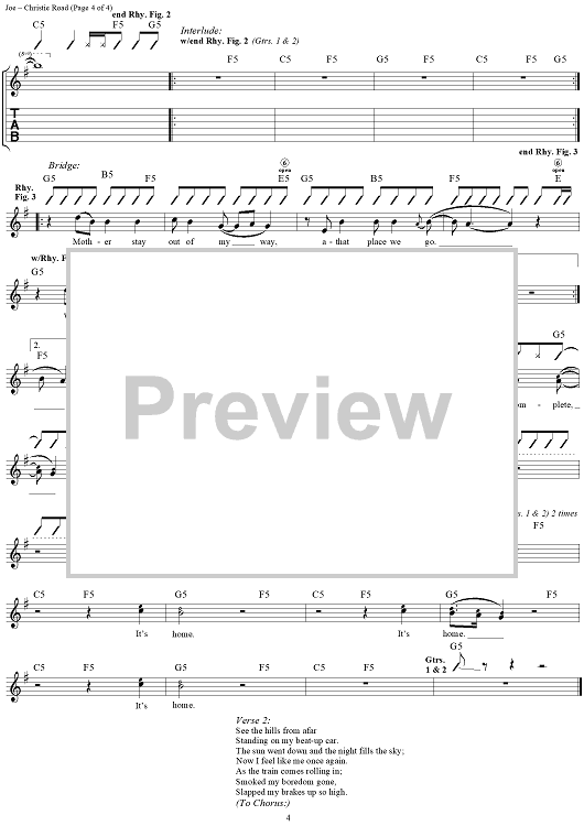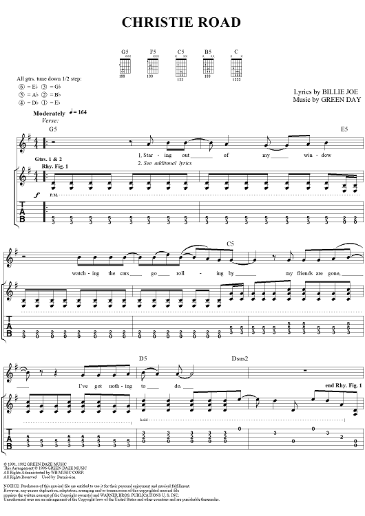 Digital Sheet Music for Christie Road by Billie Joe Armstrong, Green Day scored for Guitar Tab/Vocal; id:112962