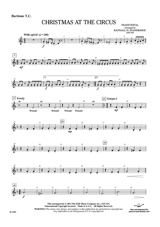 Digital Sheet Music for Christmas at the Circus - Baritone TC by Traditional, Randall D. Standridge scored for Concert Band; id:447819