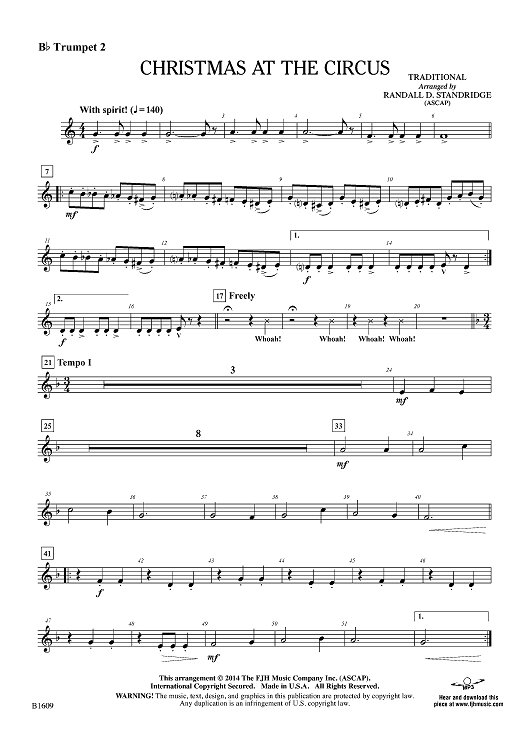 Digital Sheet Music for Christmas at the Circus - Bb Trumpet 2 by Traditional, Randall D. Standridge scored for Concert Band; id:447815