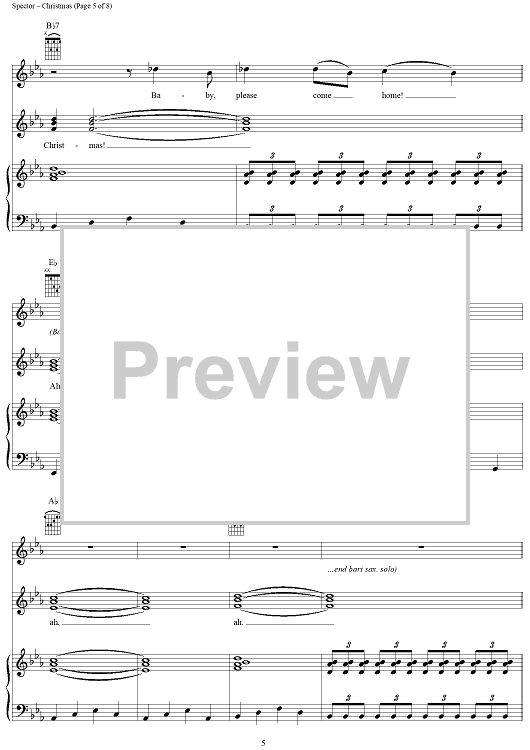 Digital Sheet Music for Christmas (Baby Please Come Home) by Phil Spector, Jeff Barry, Ellie Greenwich, Darlene Love scored for Piano/Vocal/Chords; id:304324