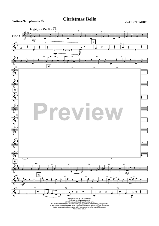 "Christmas Bells - Baritone Sax" Sheet Music by Carl Strommen