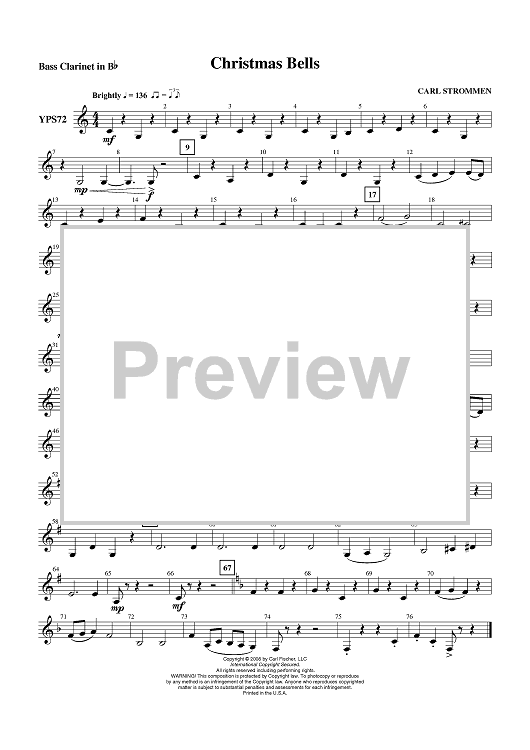 Digital Sheet Music for Christmas Bells - Bass Clarinet in B-flat by Carl Strommen scored for Concert Band; id:409605