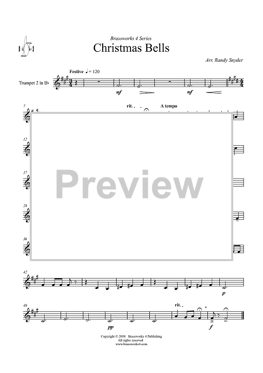 Digital Sheet Music for Christmas Bells - Trumpet in B-flat by Randy Snyder scored for Brass Quartet; id:410596