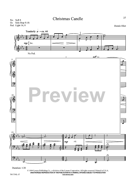 Digital Sheet Music for Christmas Candle by Dennis Eliot scored for Organ Solo; id:436718