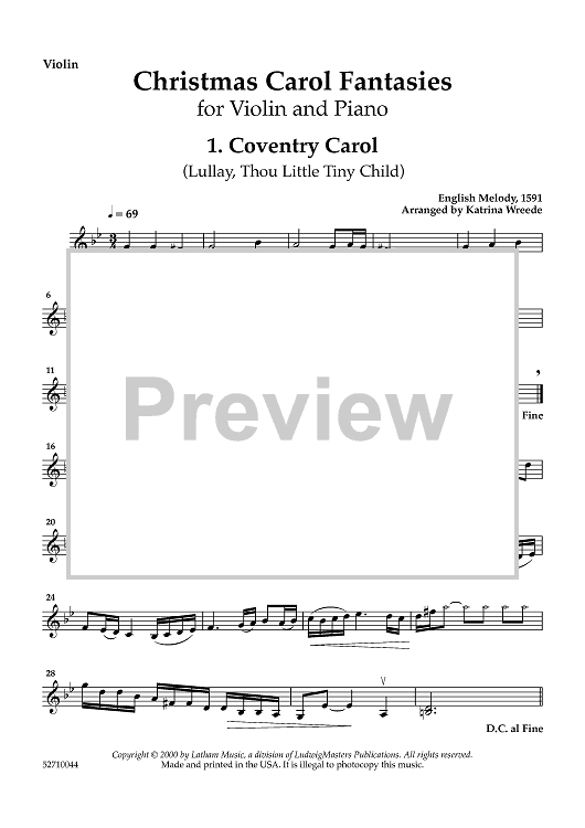 "Christmas Carol Fantasies for Violin and Piano" Sheet Music by Various