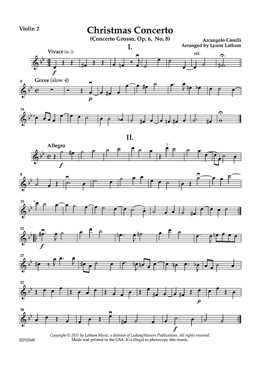 Digital Sheet Music for Christmas Concerto Concerto Grosso, Op. 6, No. 8 - Violin 2 by Arcangelo Corelli, Lynne Latham scored for String Quartet; id:461128