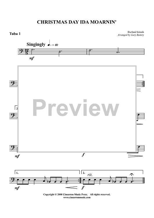 Digital Sheet Music for Christmas Day Ida Moarnin' - Tuba 1 by Gary Buttery, Traditional Shetland Islands scored for Tuba Quartet; id:416067