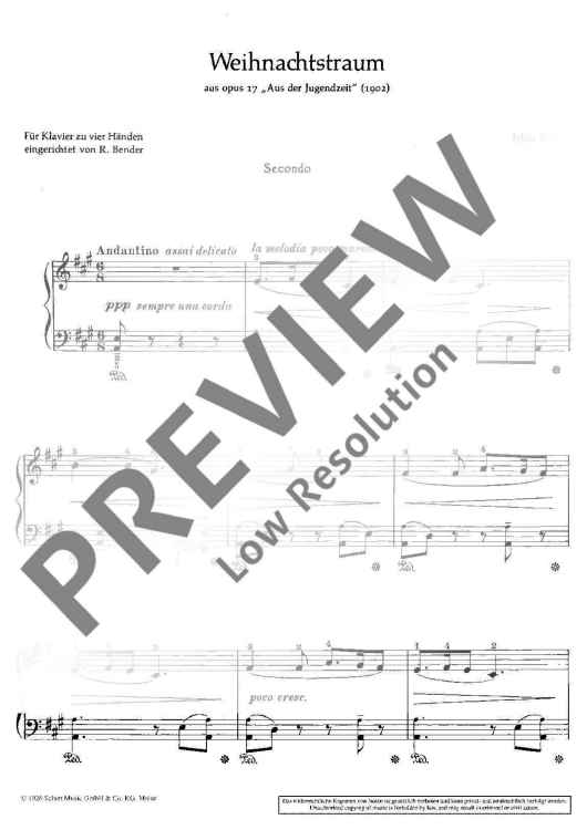 Digital Sheet Music for Christmas Dream by Max Reger scored for Piano (4 Hands); id:471468