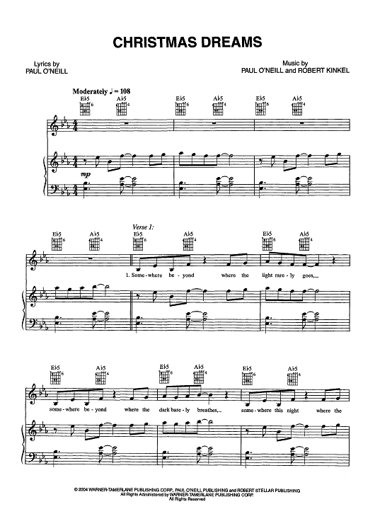 Digital Sheet Music for Christmas Dreams by Trans-Siberian Orchestra, Paul O'Neill, Robert Kinkel scored for Piano/Vocal/Chords; id:465661