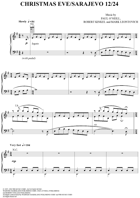 Digital Sheet Music for Christmas Eve/Sarajevo 12/24 by Trans-Siberian Orchestra, Mark Leontovich, Paul O'Neill, Robert Kinkel scored for Piano Solo; id:253019