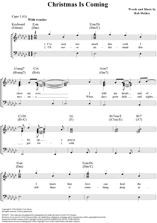 Digital Sheet Music for Christmas Is Coming by Rob Mathes scored for Piano/Vocal/Chords; id:283073