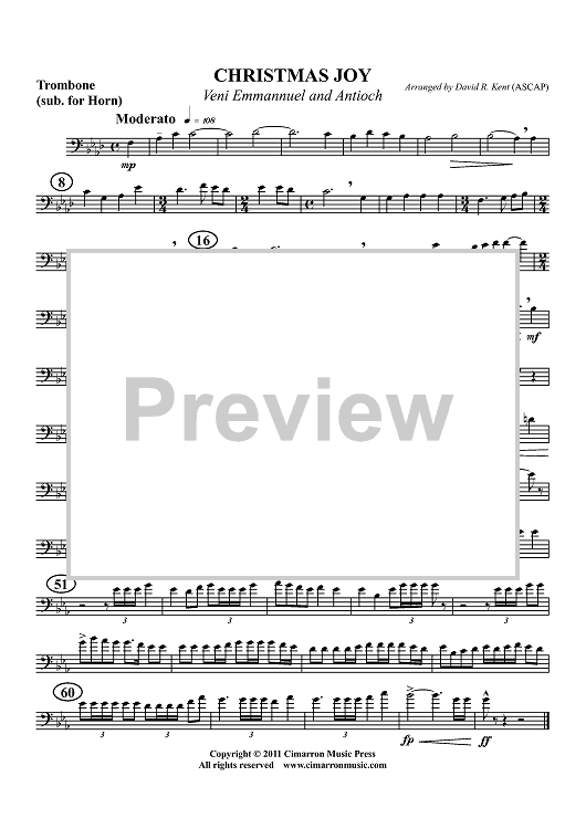 Digital Sheet Music for Christmas Joy - Veni Emmannuel and Antioch - Horn in F by Traditional, David R. Kent scored for Brass Quartet; id:425200