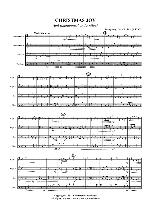 Digital Sheet Music for Christmas Joy - Veni Emmannuel and Antioch - Score by Traditional, David R. Kent scored for Brass Quartet; id:425197