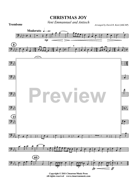 Digital Sheet Music for Christmas Joy - Veni Emmannuel and Antioch - Trombone by Traditional, David R. Kent scored for Brass Quartet; id:425201