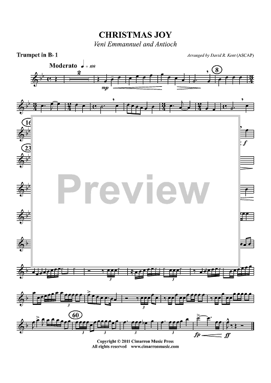 Digital Sheet Music for Christmas Joy - Veni Emmannuel and Antioch - Trumpet 1 in Bb by Traditional, David R. Kent scored for Brass Quartet; id:425198
