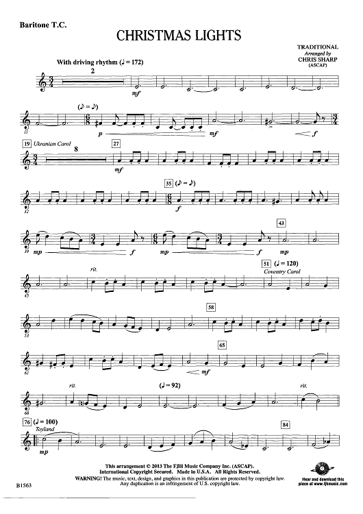 Digital Sheet Music for Christmas Lights - Baritone TC by Traditional, Chris Sharp scored for Concert Band; id:442220