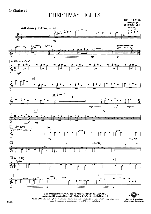 Digital Sheet Music for Christmas Lights - Bb Clarinet 1 by Traditional, Chris Sharp scored for Concert Band; id:442203