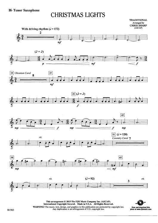 Digital Sheet Music for Christmas Lights - Bb Tenor Sax by Traditional, Chris Sharp scored for Concert Band; id:442209