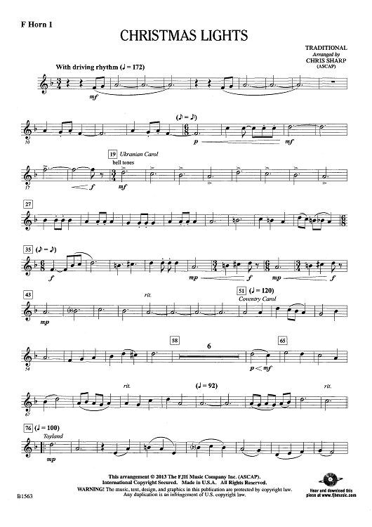 Digital Sheet Music for Christmas Lights - F Horn 1 by Traditional, Chris Sharp scored for Concert Band; id:442214