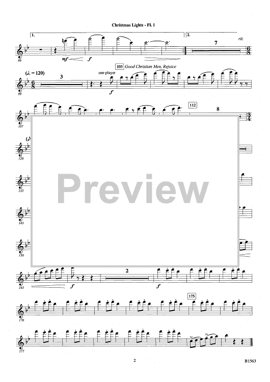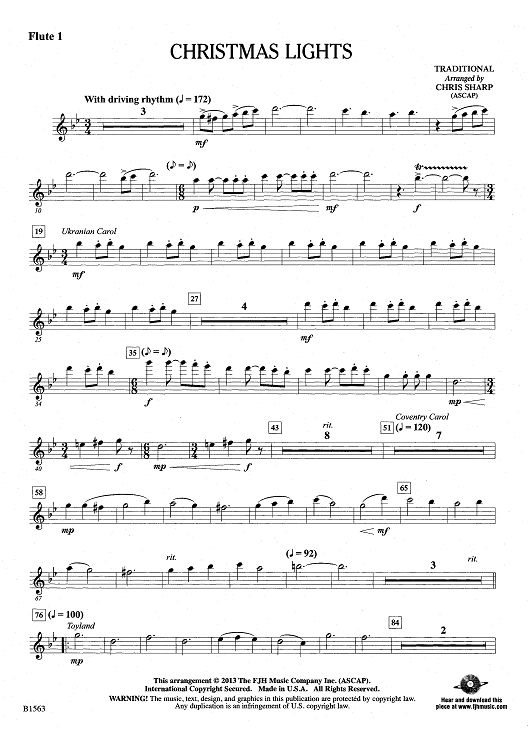 Digital Sheet Music for Christmas Lights - Flute 1 by Traditional, Chris Sharp scored for Concert Band; id:442199