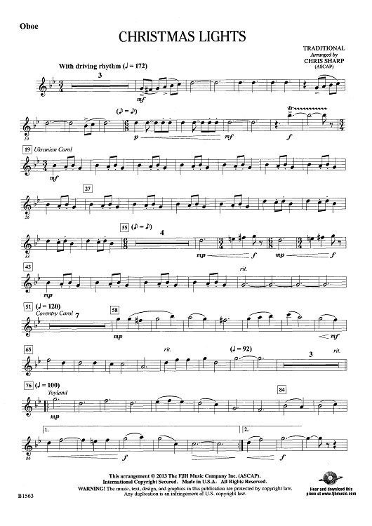 Digital Sheet Music for Christmas Lights - Oboe by Traditional, Chris Sharp scored for Concert Band; id:442201