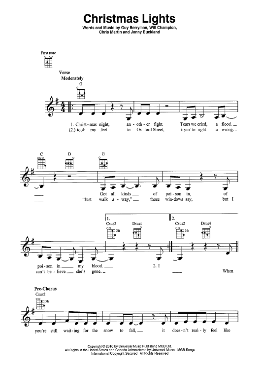 Digital Sheet Music for Christmas Lights by Chris Martin, Jonny Buckland, Guy Berryman scored for Ukulele/Vocal; id:467770