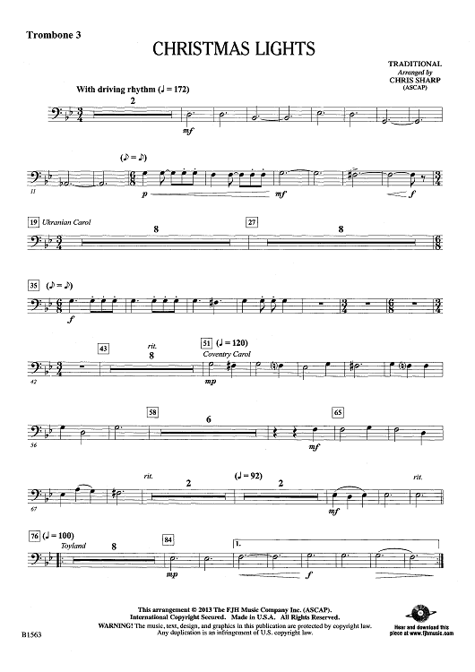 Digital Sheet Music for Christmas Lights - Trombone 3 by Traditional, Chris Sharp scored for Concert Band; id:442218