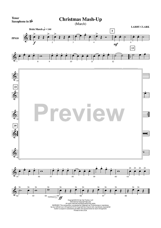Digital Sheet Music for Christmas Mash-Up (March) - Tenor Sax by Larry Clark scored for Concert Band; id:436051