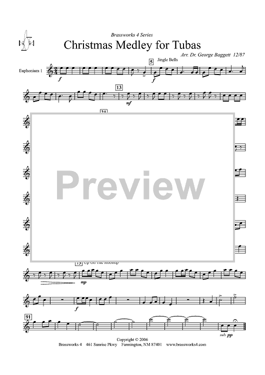 Digital Sheet Music for Christmas Medley for Tubas - Euphonium 1 TC by Dr. George Baggett scored for Tuba/Euphonium Quartet; id:358137