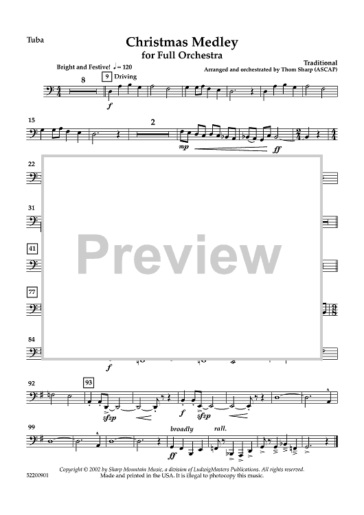 Digital Sheet Music for Christmas Medley - Tuba by Traditional, Thom Sharp scored for Full Orchestra; id:459778
