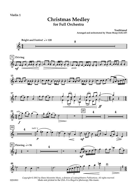 Digital Sheet Music for Christmas Medley - Violin 1 by Traditional, Thom Sharp scored for Full Orchestra; id:459782